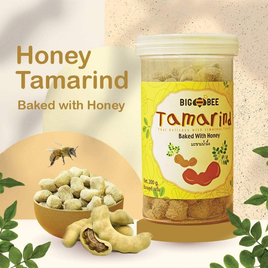 Big Bee Brand - Tamarind is a 100% pure Thai tamarind baked with honey which is a healthy and high fiber product without using any sugar, specially blended and coated with real plum powder for a more delicious taste.