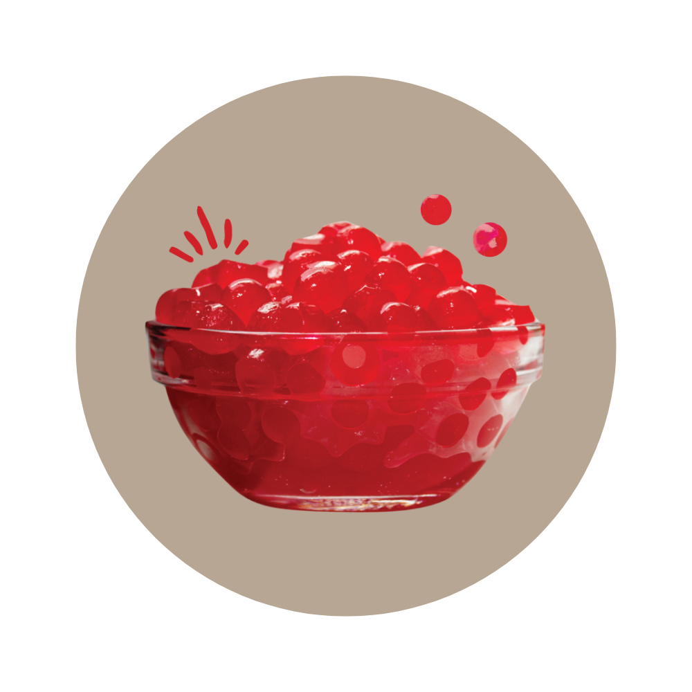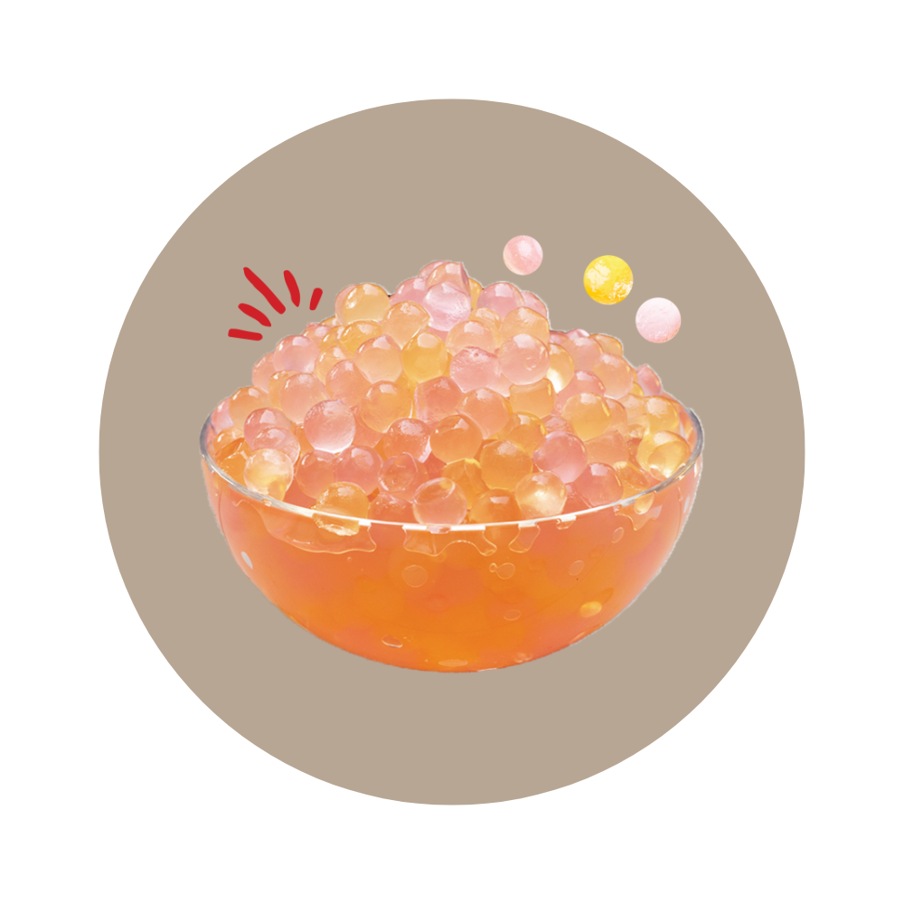 Popping Boba, which contains grain granules wrapped in soft-skinned gelatin, produces a delicious and soft taste, making it a very unique topping for drinks and desserts.