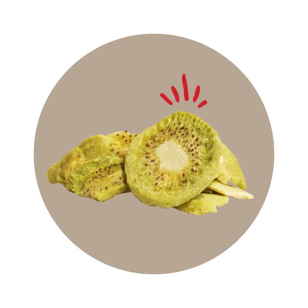 Made from vibrant green kiwi, these freeze-dried slices offer a bold, tangy-sweet flavor with a delightfully crisp texture. Their natural bright color and zesty taste make them an eye-catching and refreshing addition to any dish.