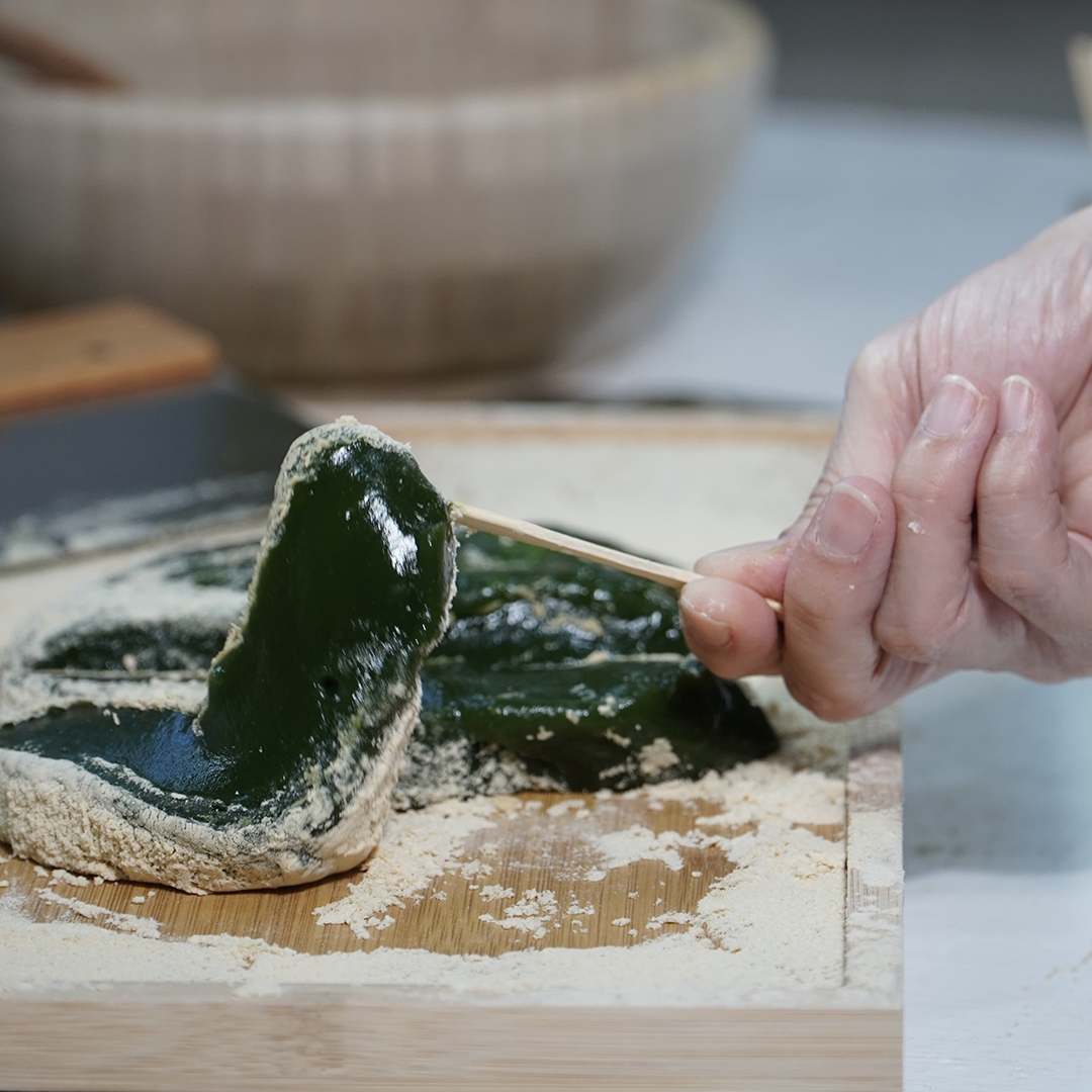 Infused with high-quality Japanese matcha, this variant delivers a subtle earthy flavor and elegant green hue. Traditionally enjoyed dusted with kinako (roasted soybean flour) and drizzled with rich Kuromitsu syrup, it offers a truly refined dessert experience.
